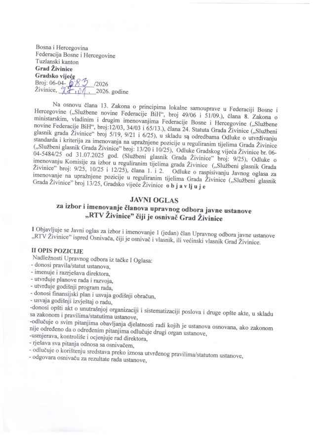 Početna aktuelnosti JAVNI OGLAS aktuelnostiZivinice danas JAVNI OGLAS 18/02/2026 14 0 FacebookTwitterPinterestWhatsApp 1 UPRAVNI ODBOR 1 2 3 4