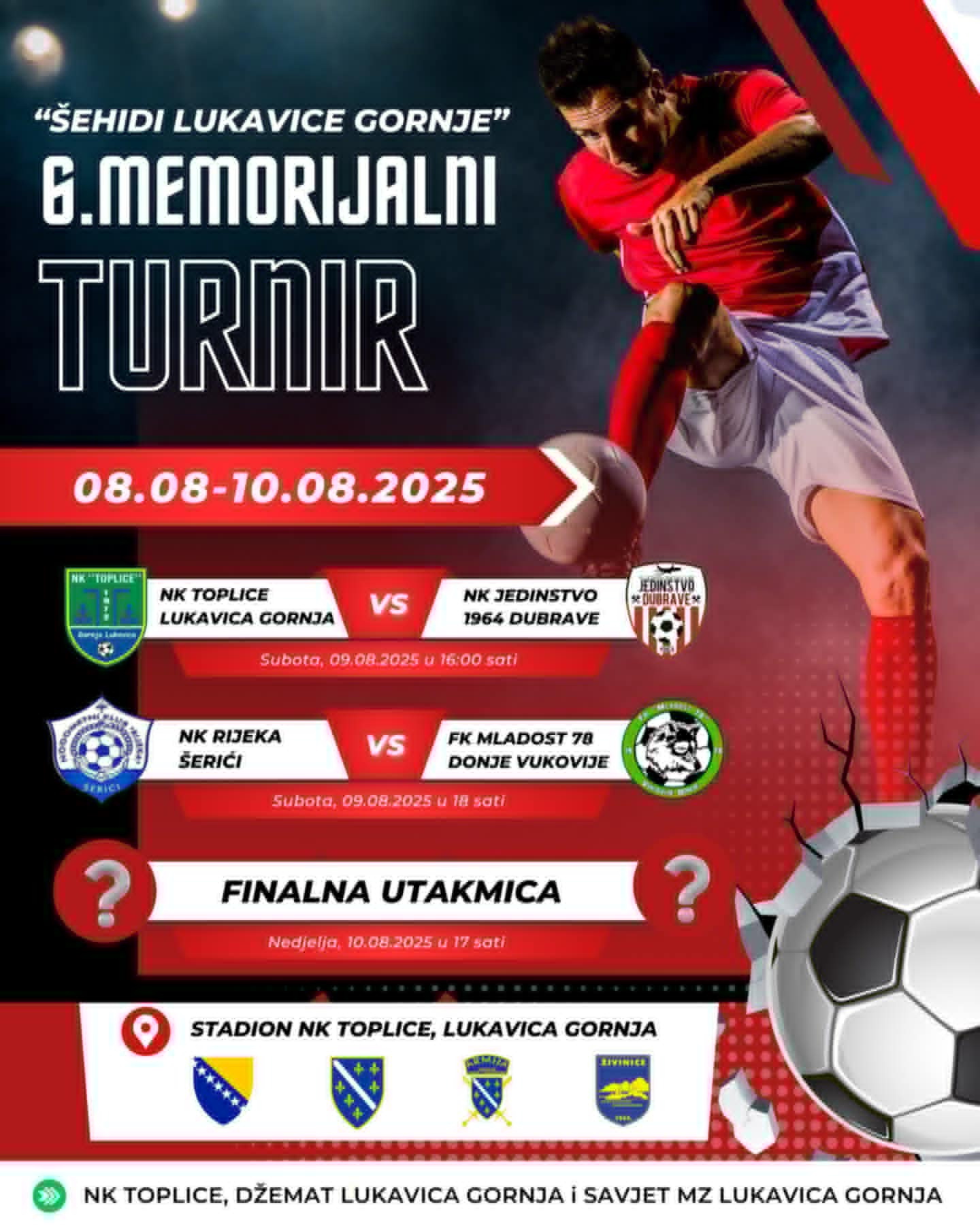 NK Toplice , Savjet i Džemat Lukavica Gornja organizuje 6.Memorijalni turnir ˝Šehidi Lukavice Gornje˝.