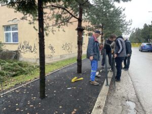 Ni hladno vrijeme ni kiša nisu spriječili ovu malu skupinu da svoju inicijativu realizuju, kako bi učenici imali još sigurniji prilaz školi.